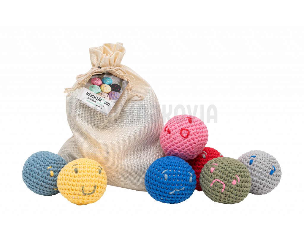 Sada Ksichtíkov obsahuje 7 loptičiek, ktoré vyjadrujú 6 základných emócií podľa